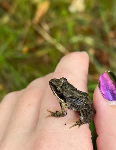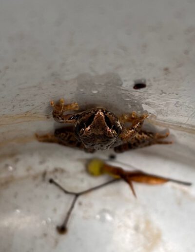 Der „Rekord“ am Zaun liegt bei 246 Babyfröschen, die von einem Helfer allein an einem Tag 2023 gesammelt und über die Straße getragen wurden. In der Zeit hatten alle Helfer:innen über 200 Babyfrösche in ihren Eimern, sodass alleine in diesem Jahr über 1000 Babyfrösche bei der Rückwanderung eine Tragegelegenheit gefunden haben.